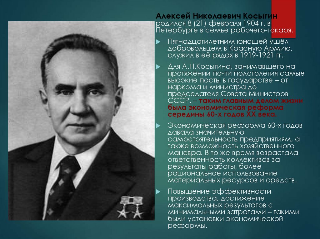 7. Косыгин Алексей Николаевич (1964 – 1980) Председатель Совета министров СССР
