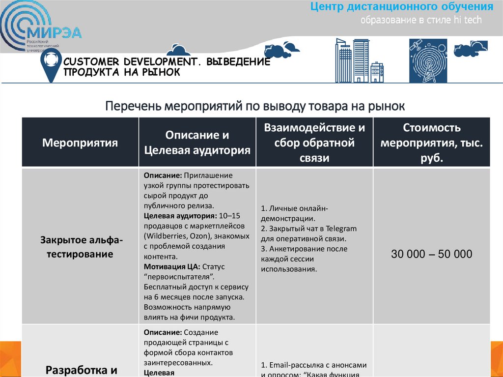 Центр дистанционного обученияСUSTOMER DEVELOPMENT. ВЫВЕДЕНИЕ