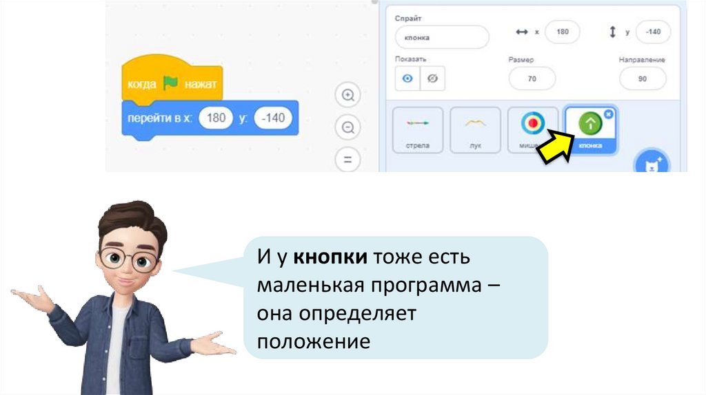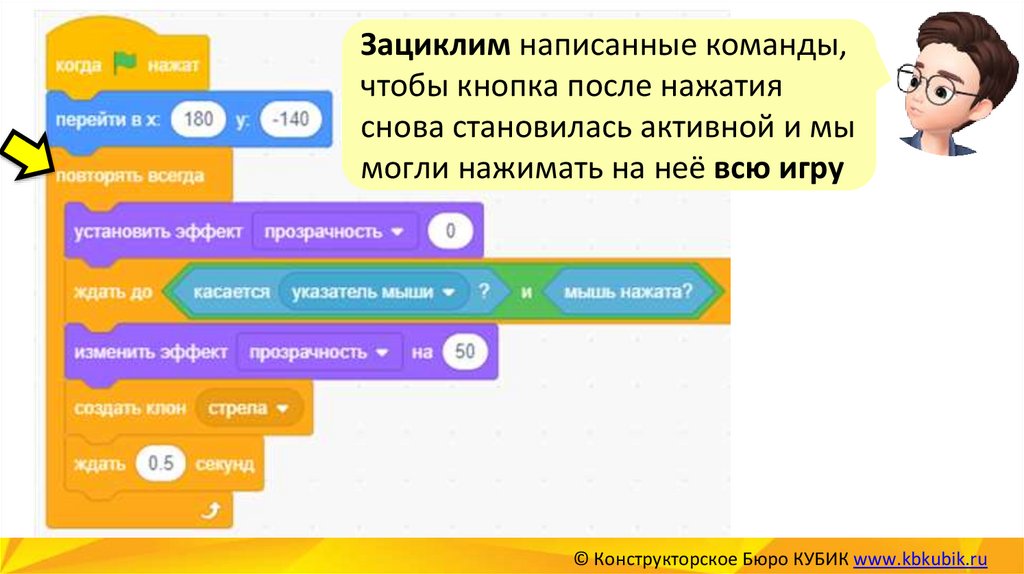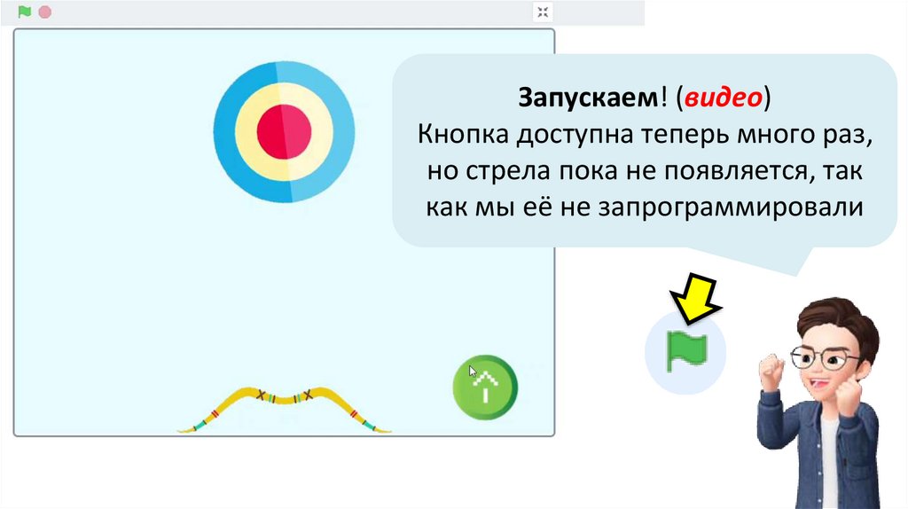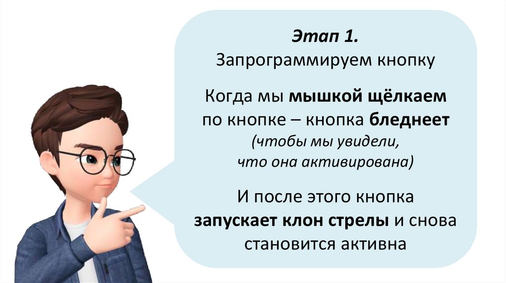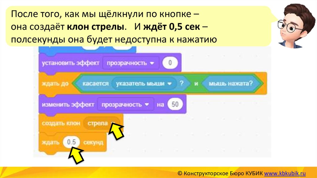 После того, как мы щёлкнули по кнопке –она создаёт клон стрелы. И ждёт 0,5 сек –