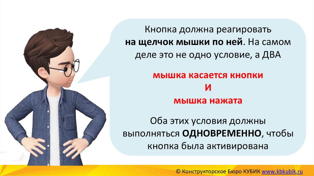 Кнопка должна реагироватьна щелчок мышки по ней. На самом