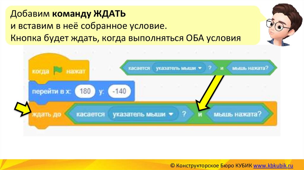 Добавим команду ЖДАТЬи вставим в неё собранное условие.