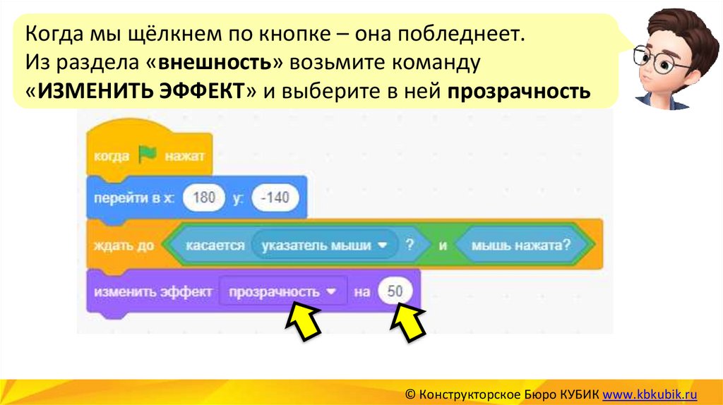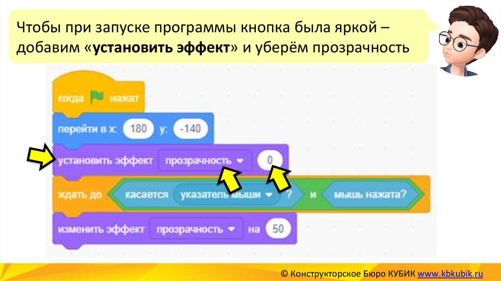 Чтобы при запуске программы кнопка была яркой –добавим «установить эффект» и уберём прозрачность