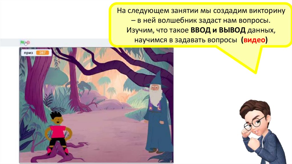 На следующем занятии мы создадим викторину– в ней волшебник задаст нам вопросы.