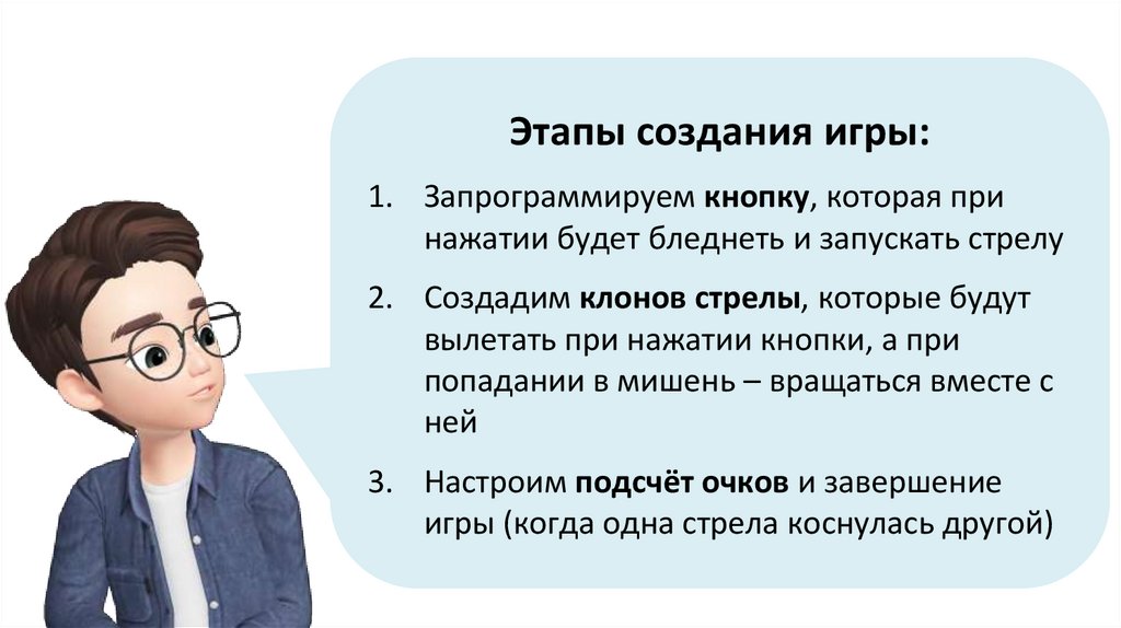 Этапы создания игры:1. Запрограммируем кнопку, которая при