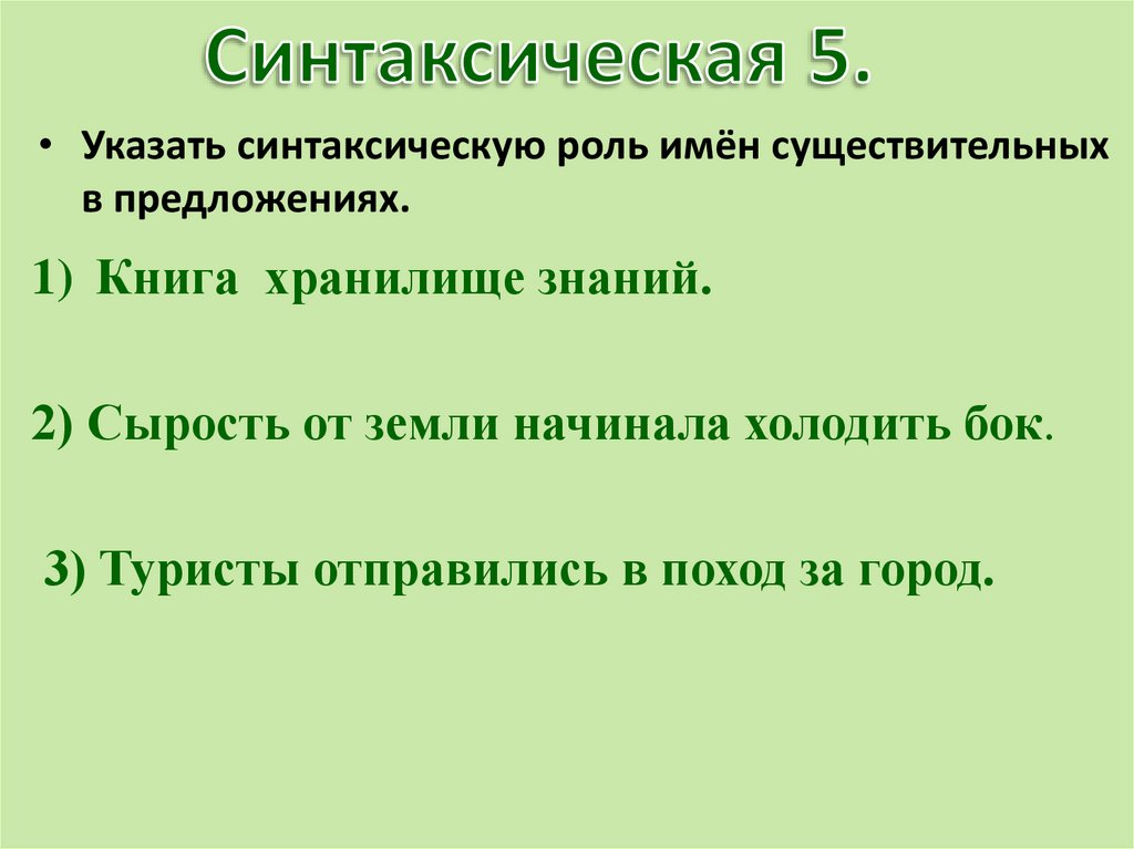 • Указать синтаксическую роль имён существительныхв предложениях.
