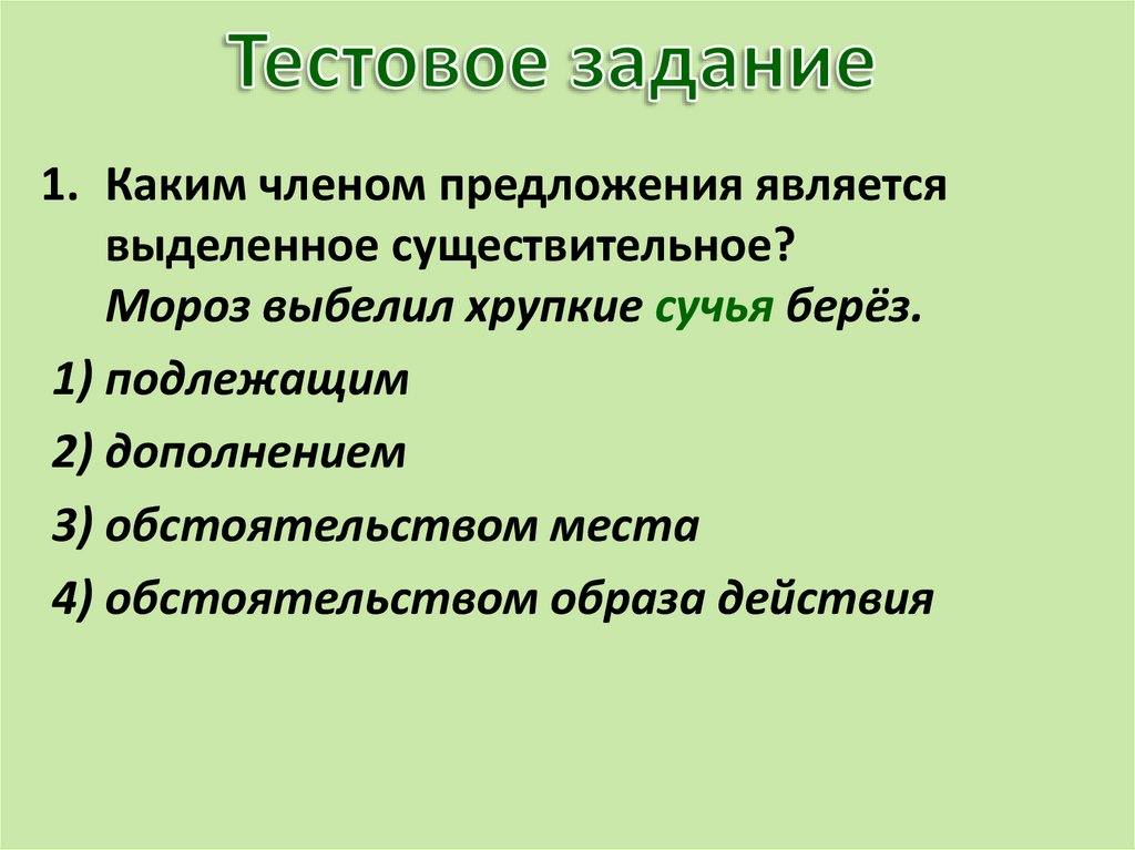 1. Каким членом предложения являетсявыделенное существительное?