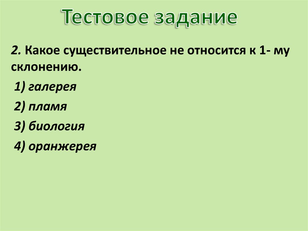 2. Какое существительное не относится к 1- мусклонению.