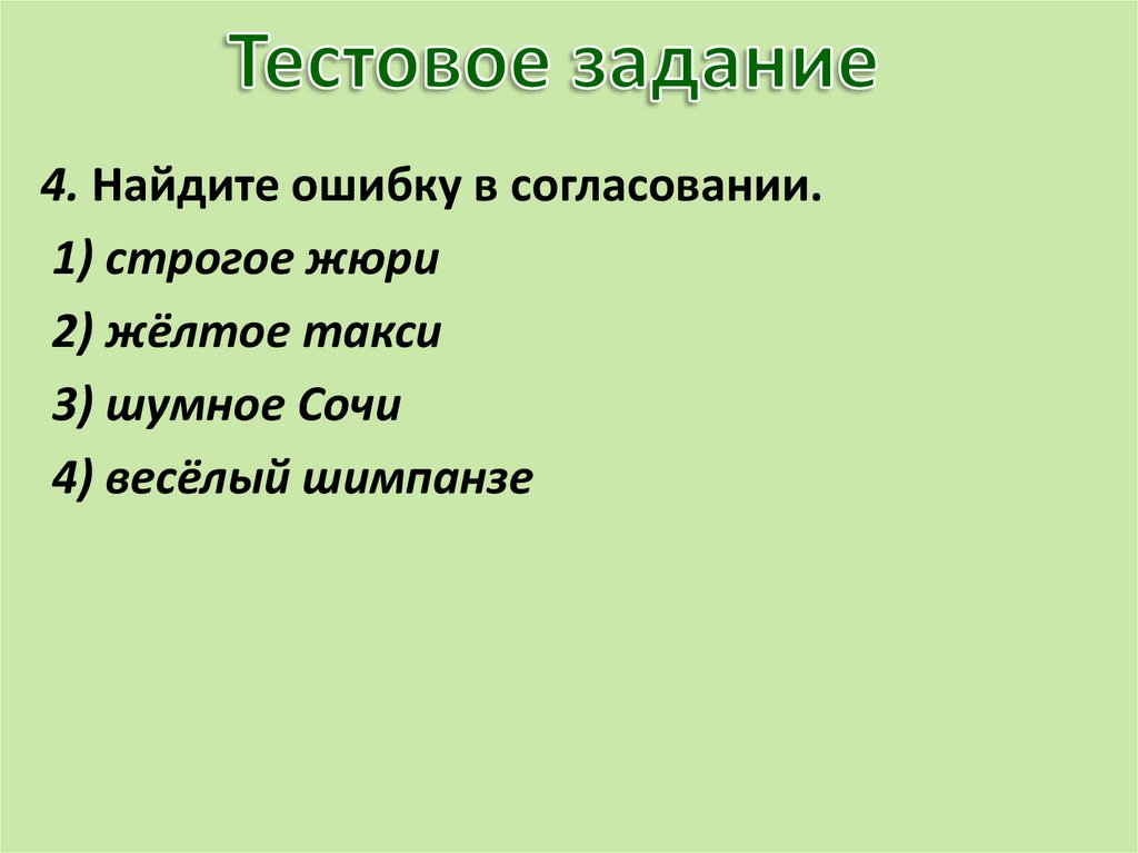 4. Найдите ошибку в согласовании.1) строгое жюри