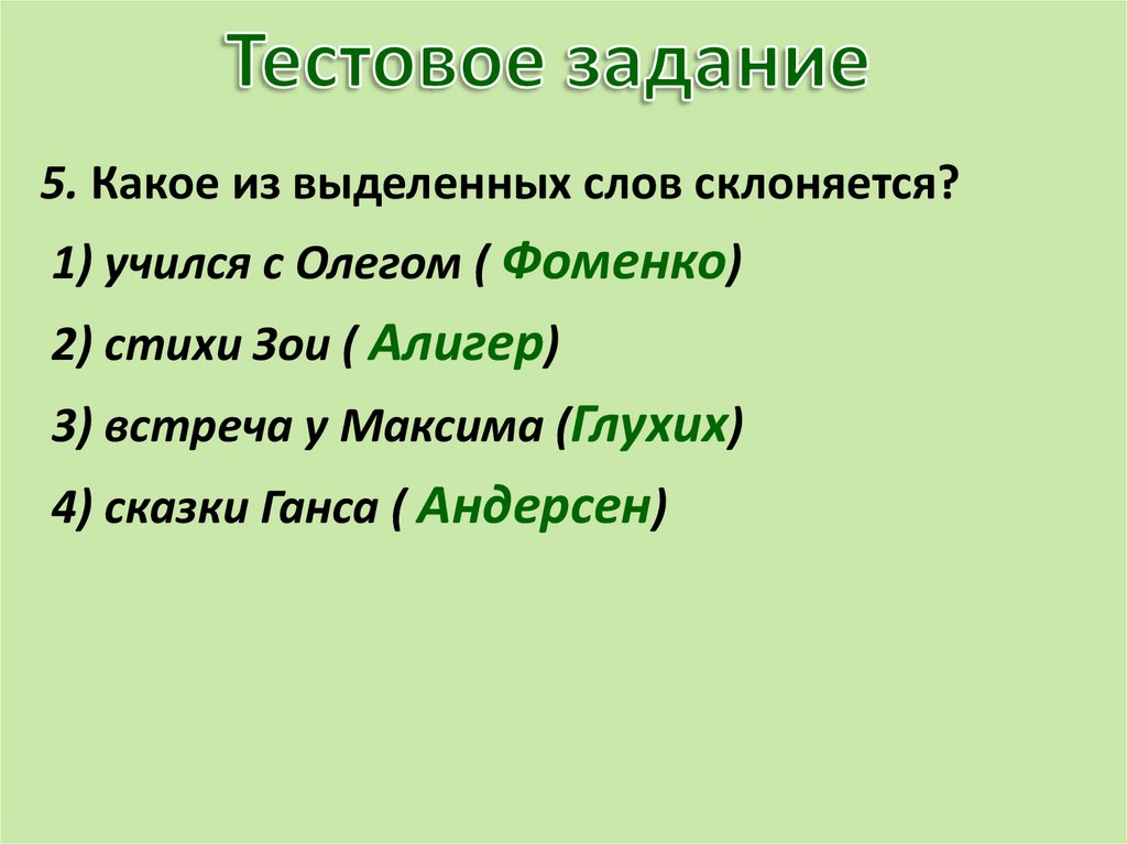 5. Какое из выделенных слов склоняется?1) учился с Олегом ( Фоменко)