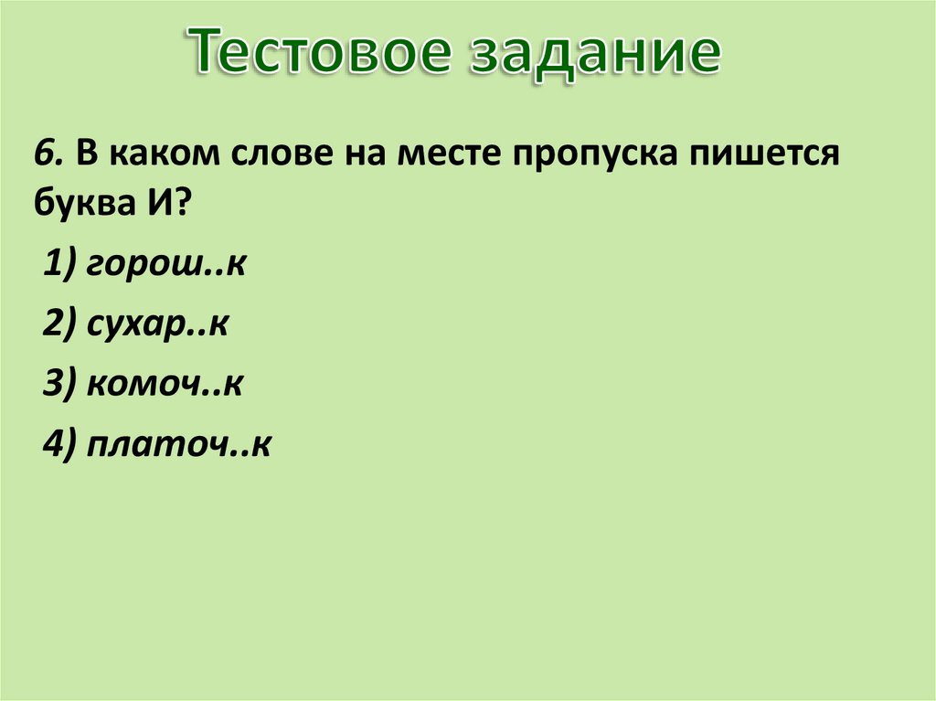 6. В каком слове на месте пропуска пишетсябуква И?