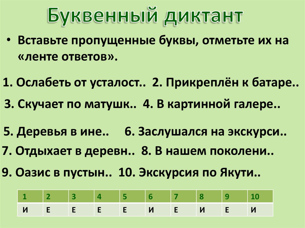 • Вставьте пропущенные буквы, отметьте их на«ленте ответов».