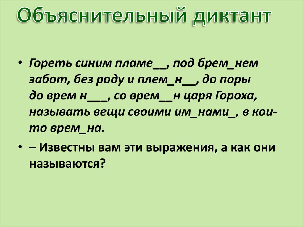 • Гореть синим пламе__, под брем_немзабот, без роду и плем_н__, до поры