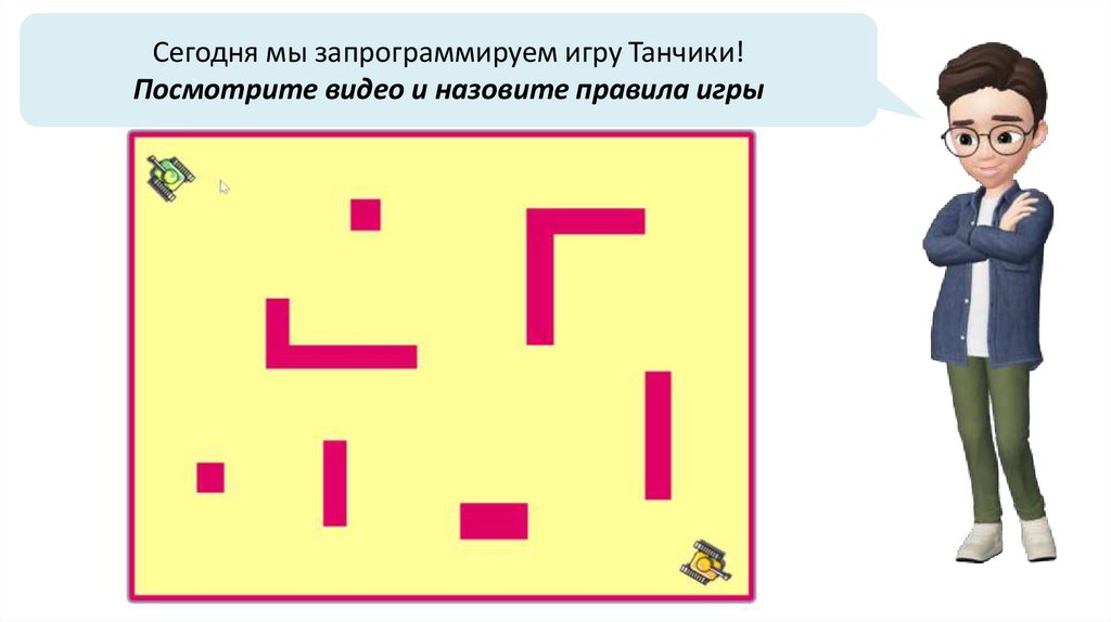 Сегодня мы запрограммируем игру Танчики!Посмотрите видео и назовите правила игры