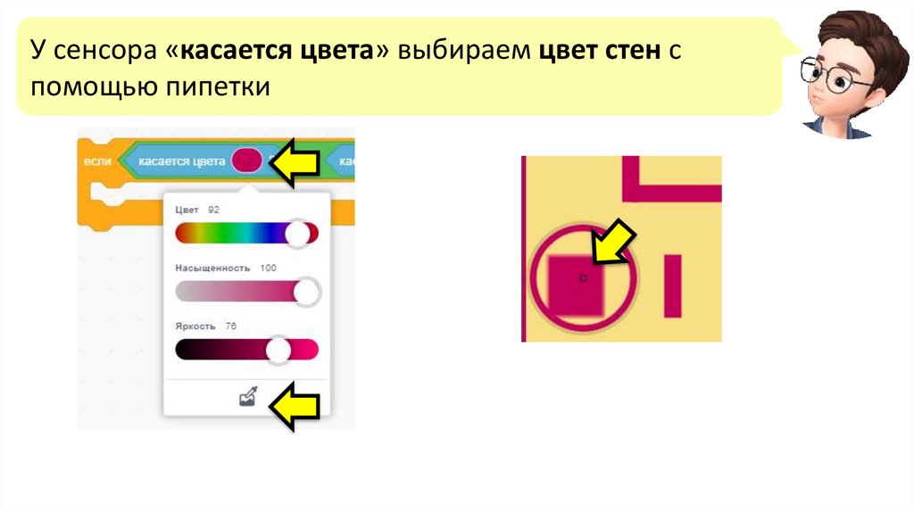 У сенсора «касается цвета» выбираем цвет стен спомощью пипетки