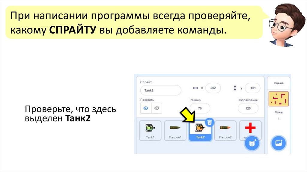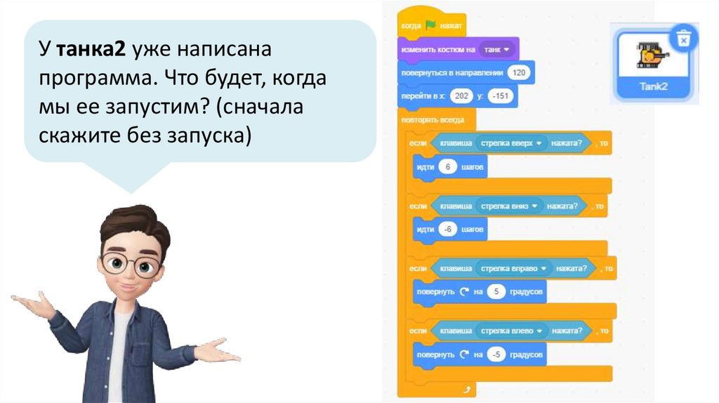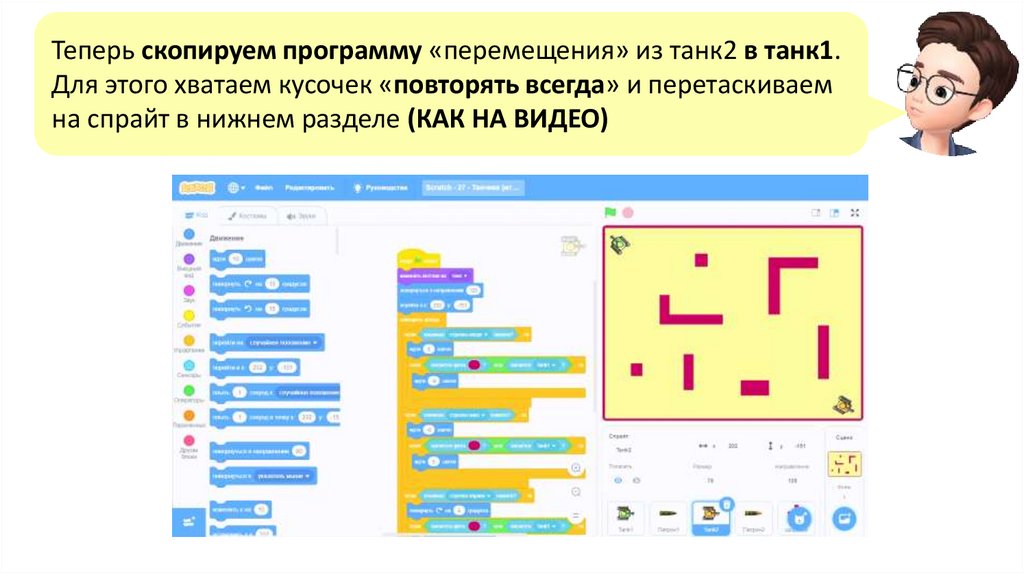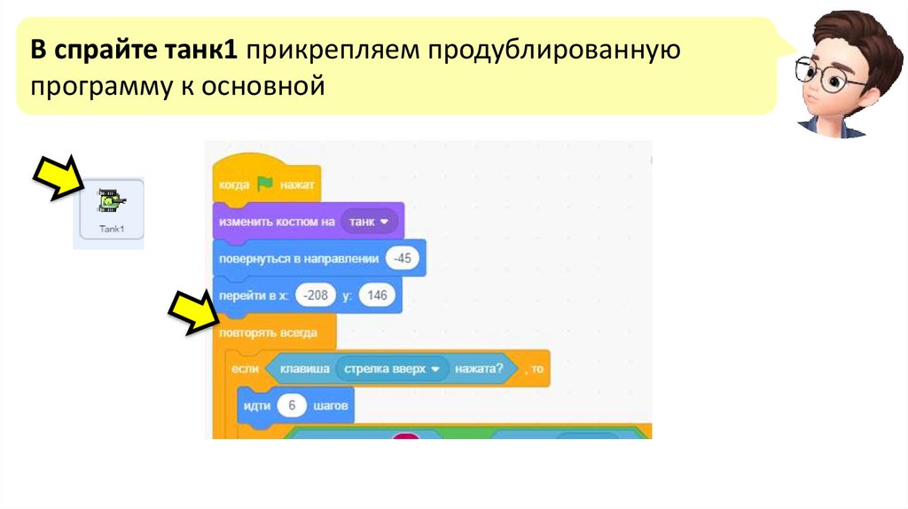 В спрайте танк1 прикрепляем продублированнуюпрограмму к основной