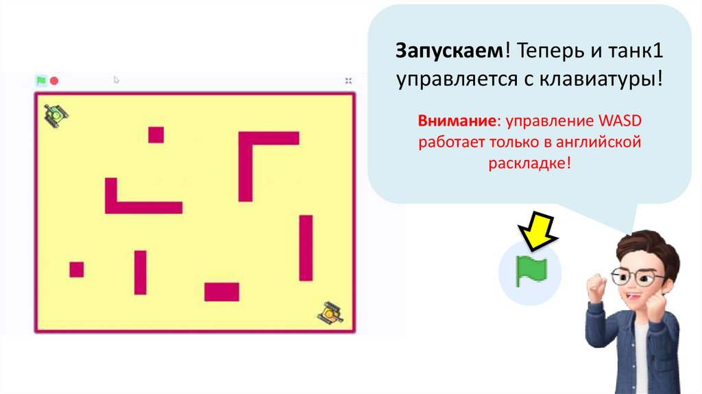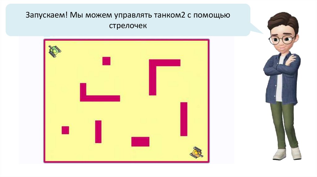 Запускаем! Мы можем управлять танком2 с помощьюстрелочек