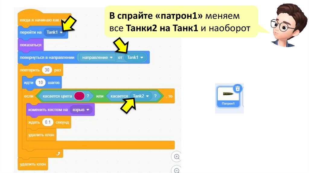 В спрайте «патрон1» меняемвсе Танки2 на Танк1 и наоборот