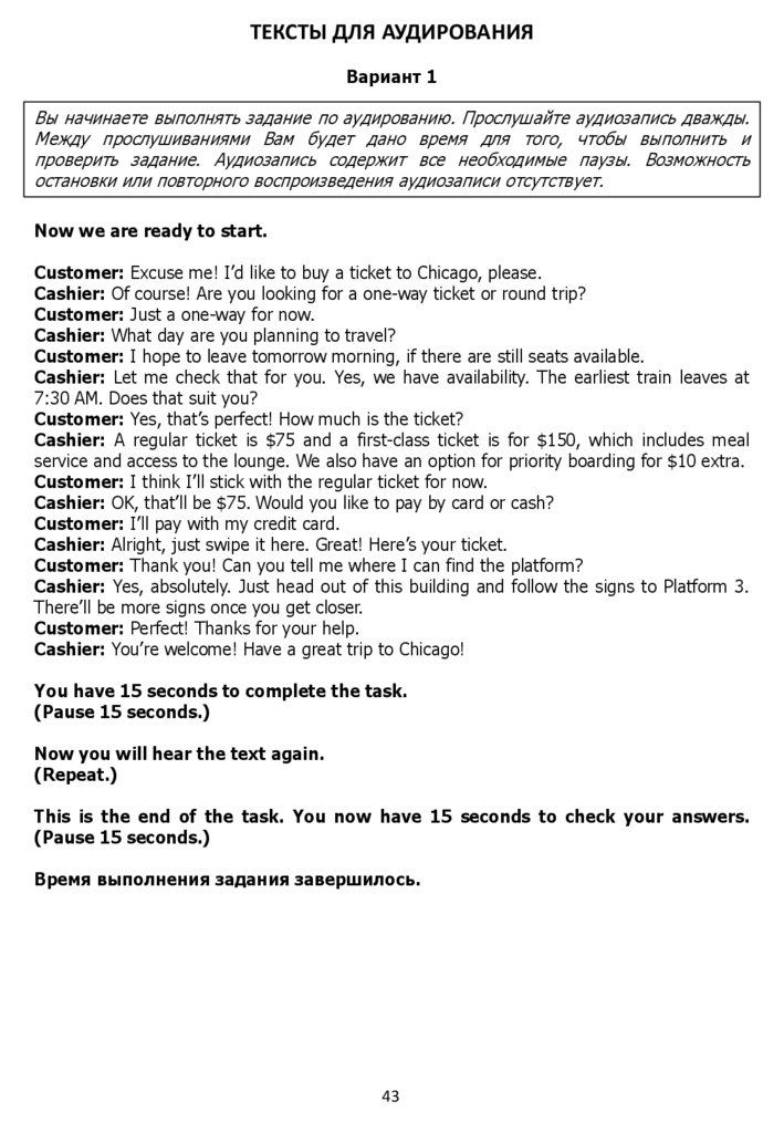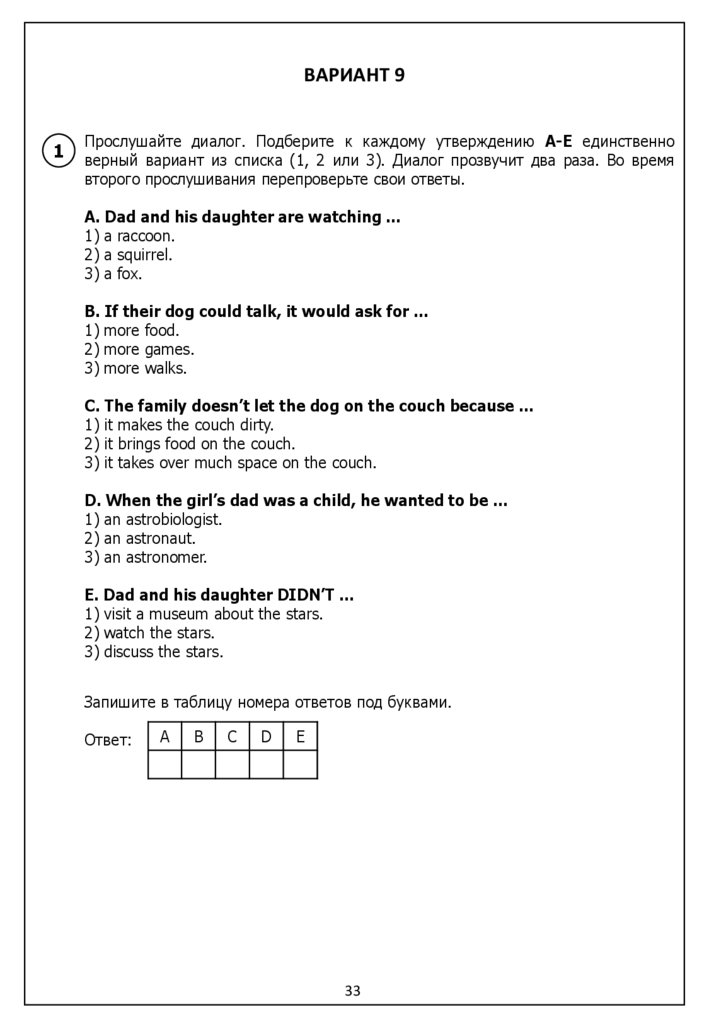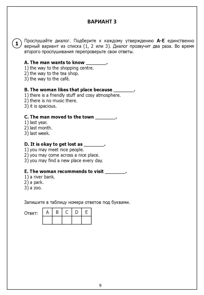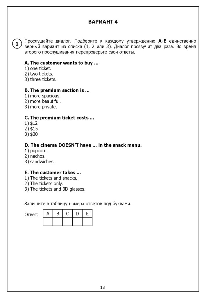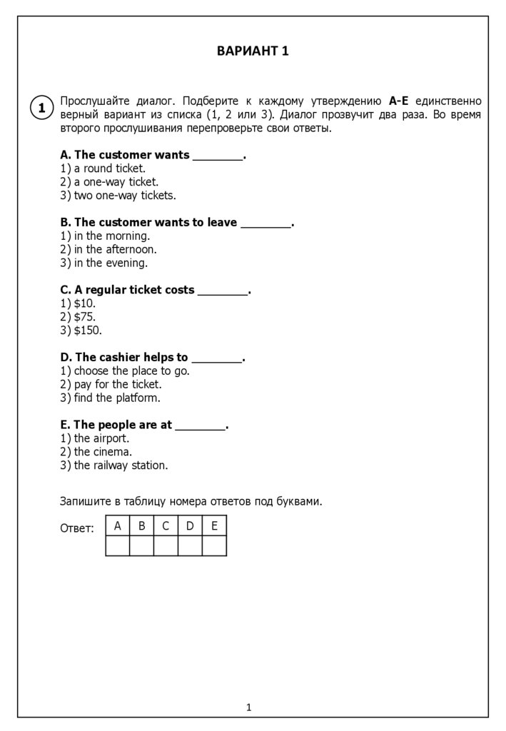 верный вариант из списка (1, 2 или 3). Диалог прозвучит два раза. Во время
