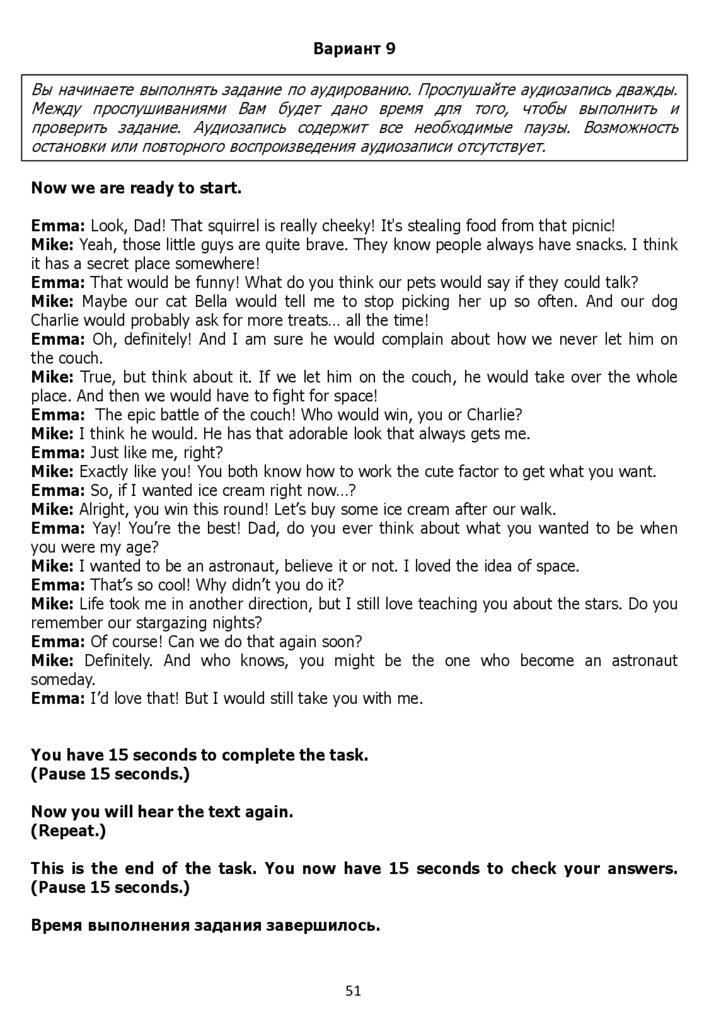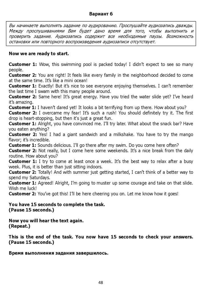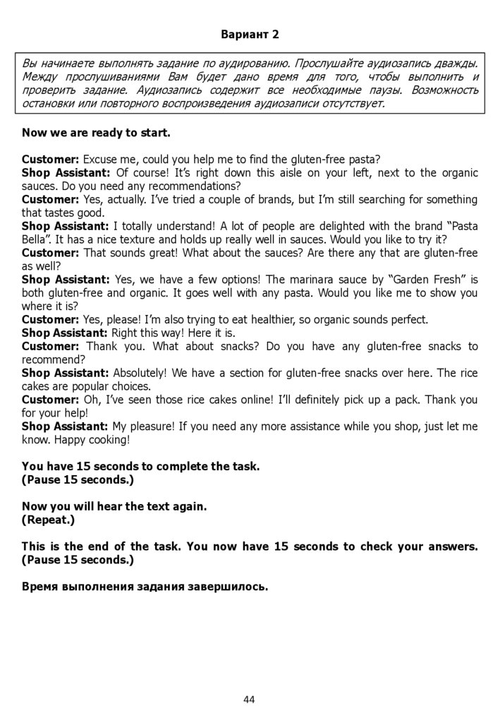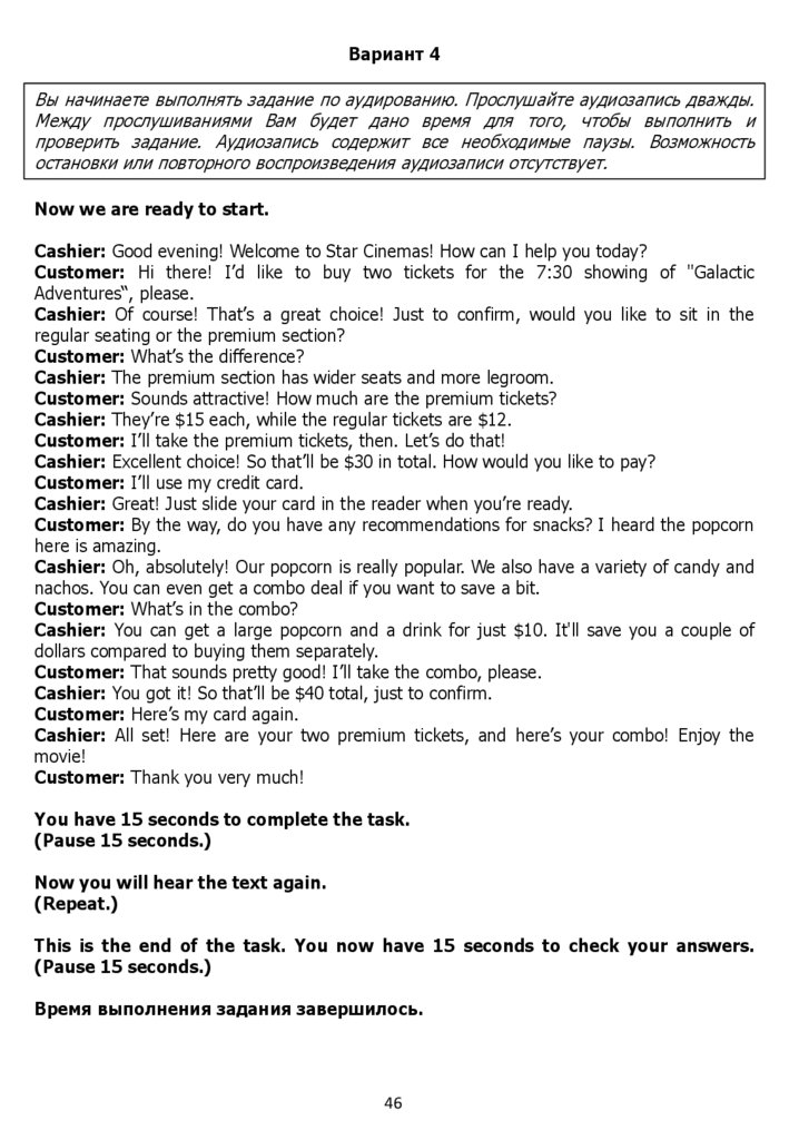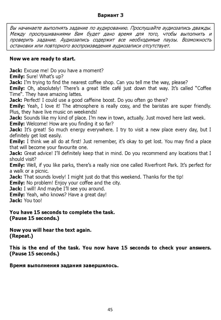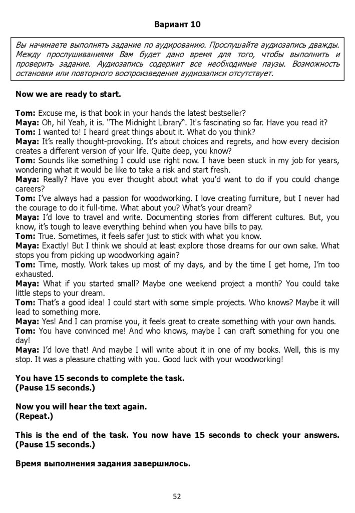 верный вариант из списка (1, 2 или 3). Диалог прозвучит два раза. Во время
