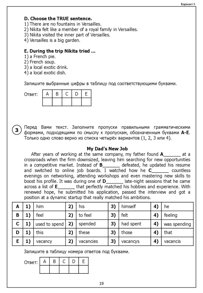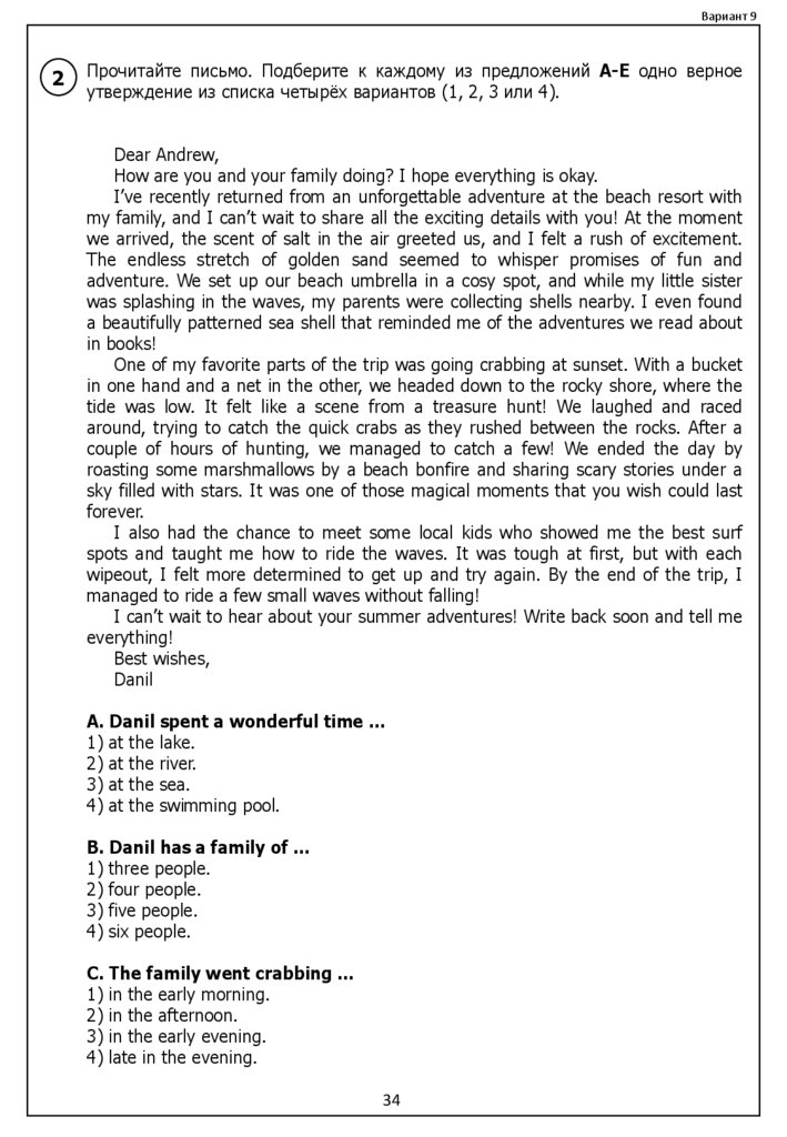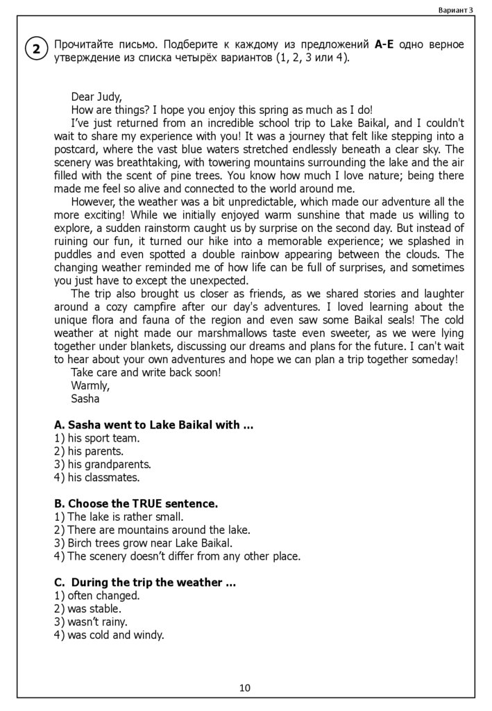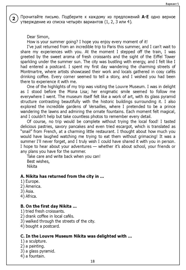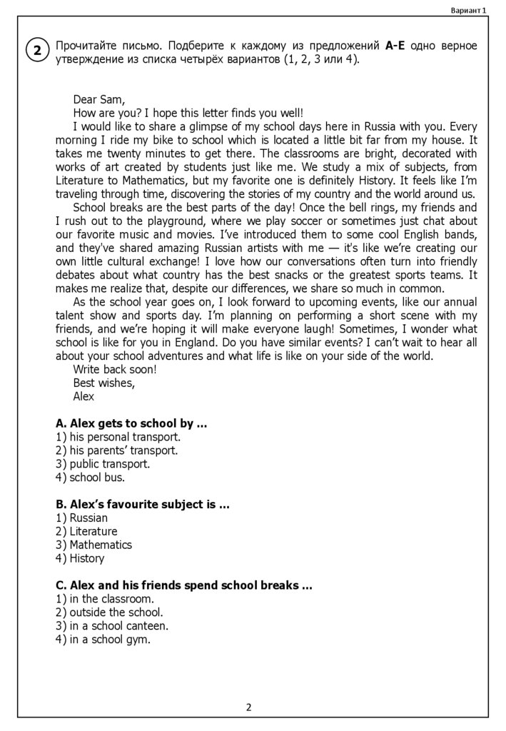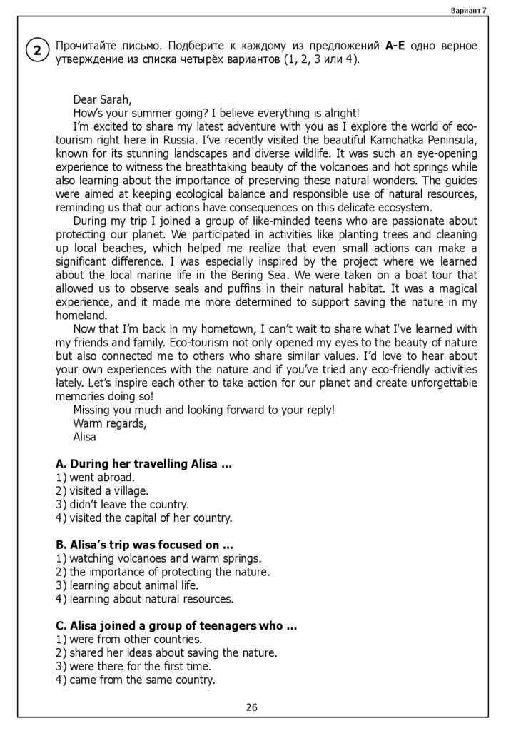 Прочитайте письмо. Подберите к каждому из предложений A-E одно верное