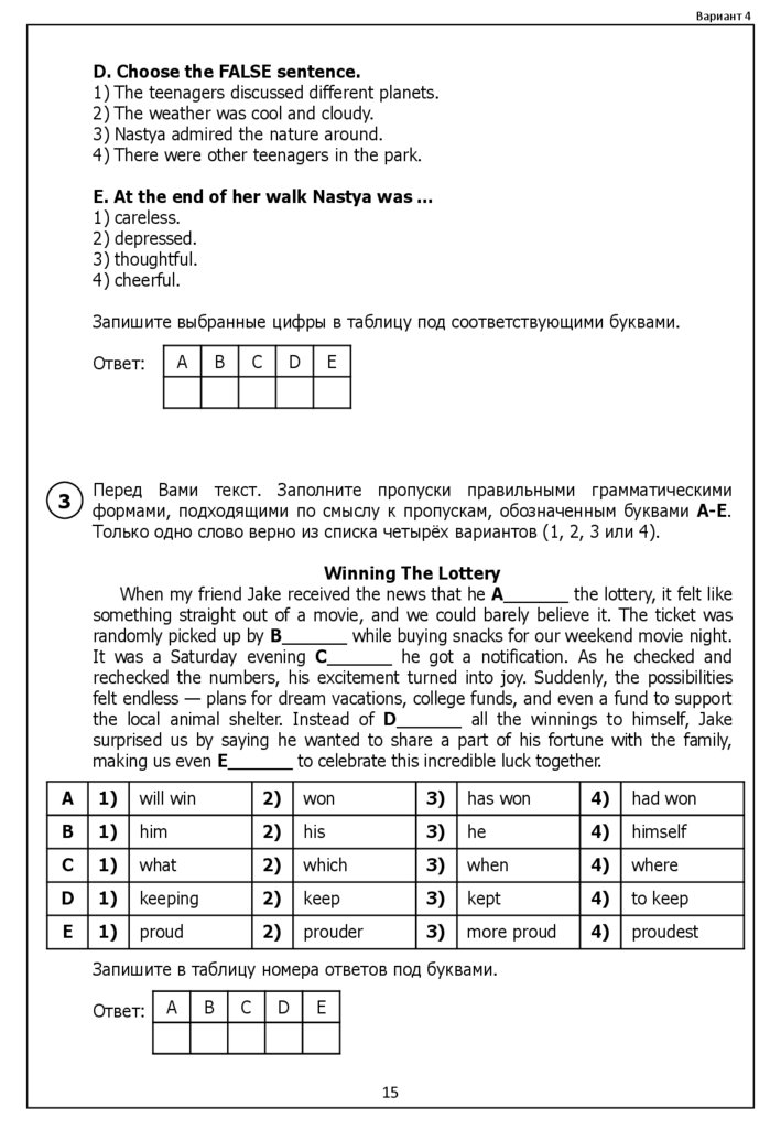 формами, подходящими по смыслу к пропускам, обозначенным буквами A-E.