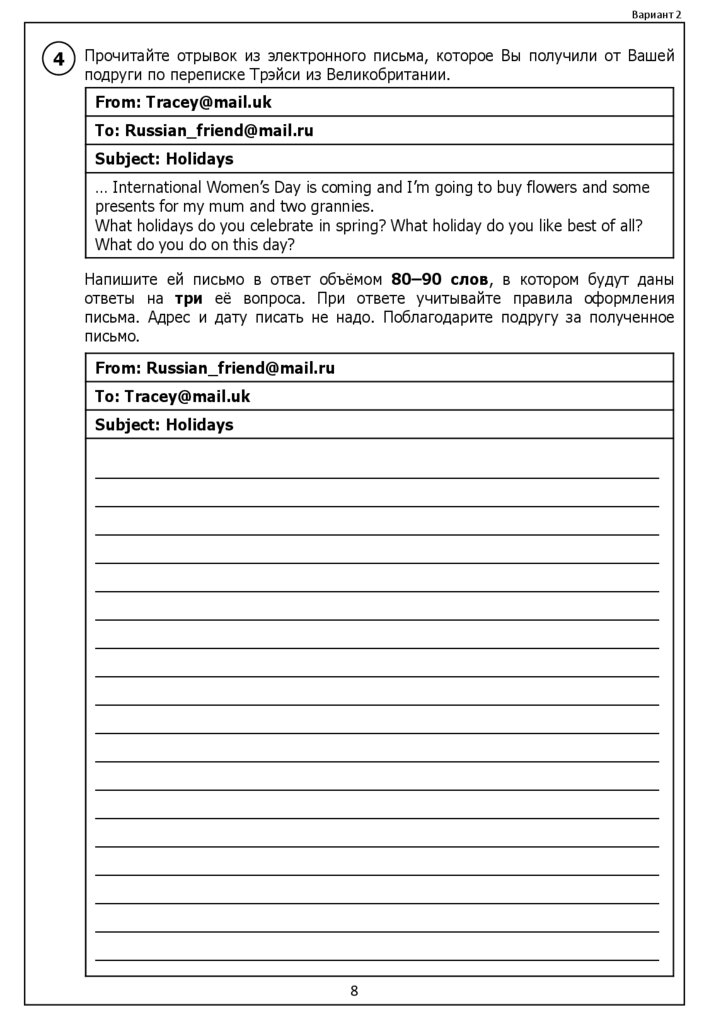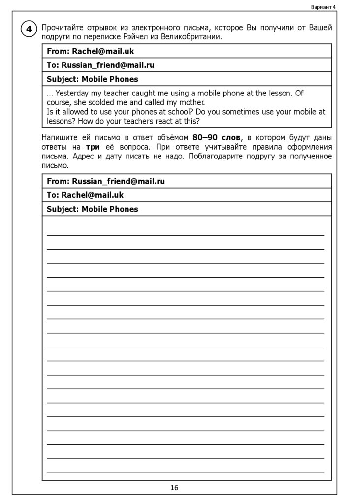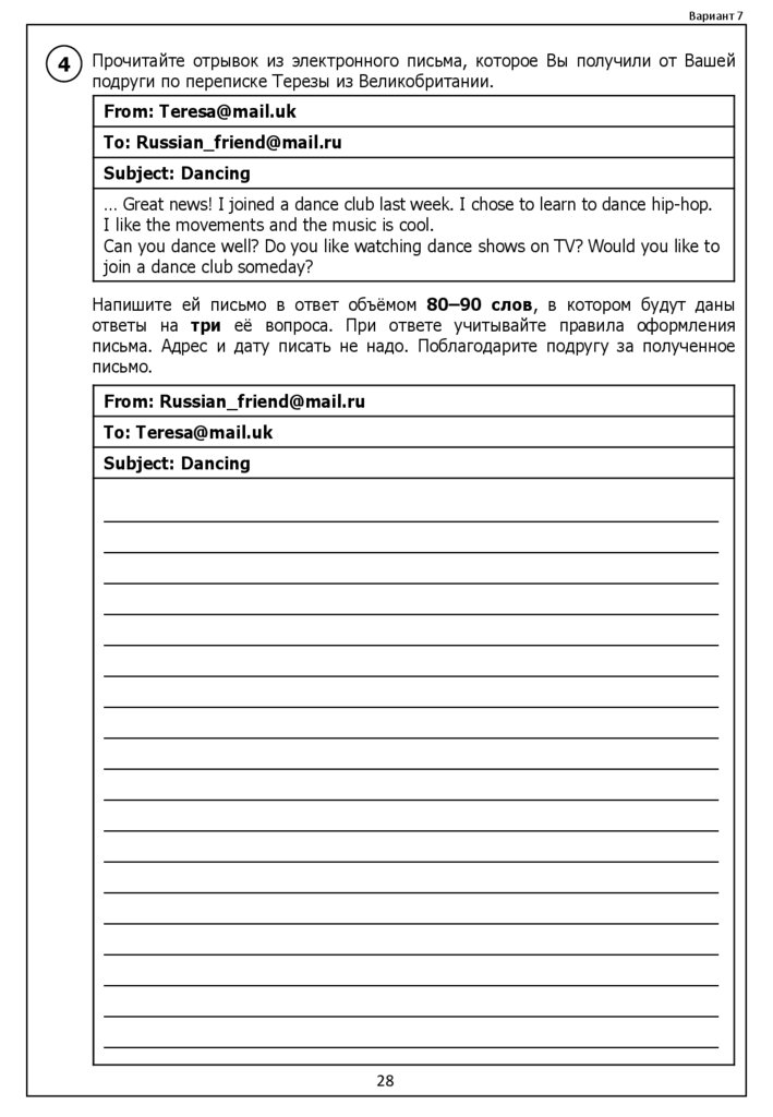задания также равна 0 баллам. При превышении объема письма 99 слова, оценке подлежат