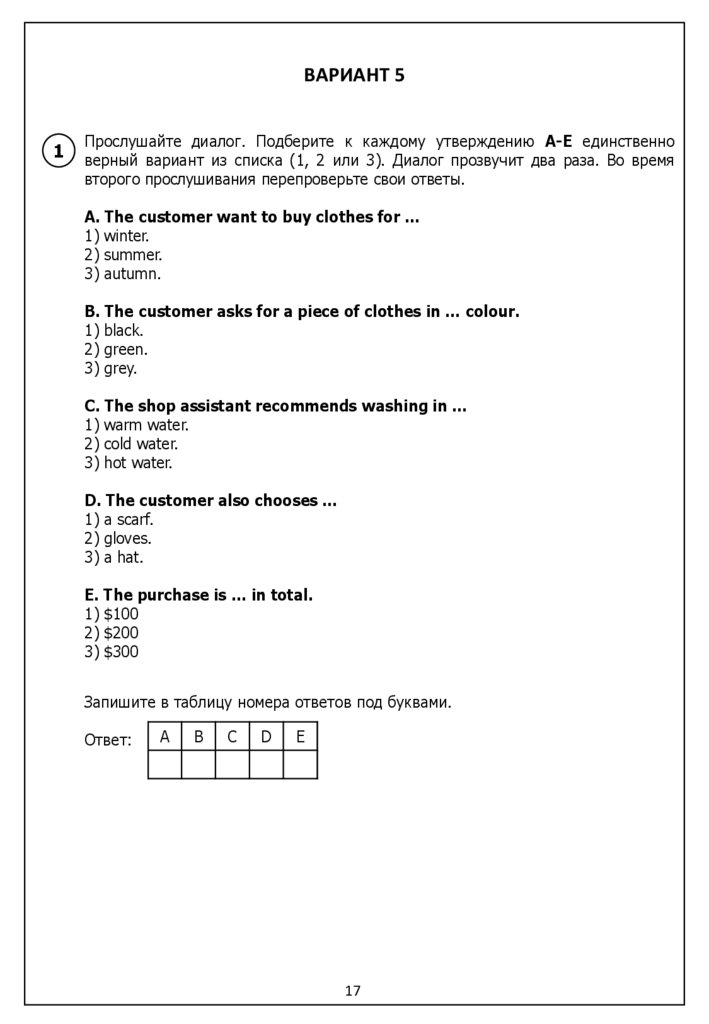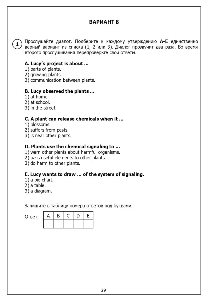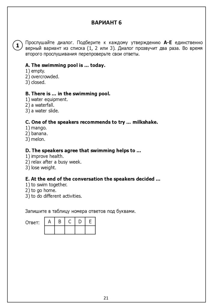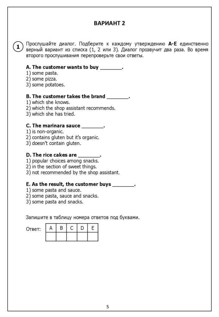 Прослушайте диалог. Подберите к каждому утверждению A-E единственно