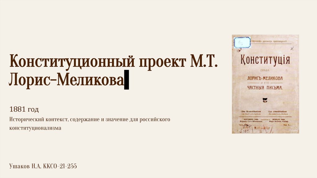 Конституционный проект М.Т. Лорис-Меликова 1881 года — уникальный