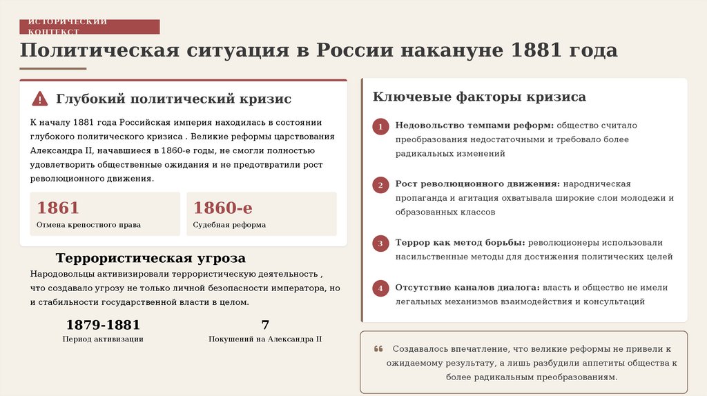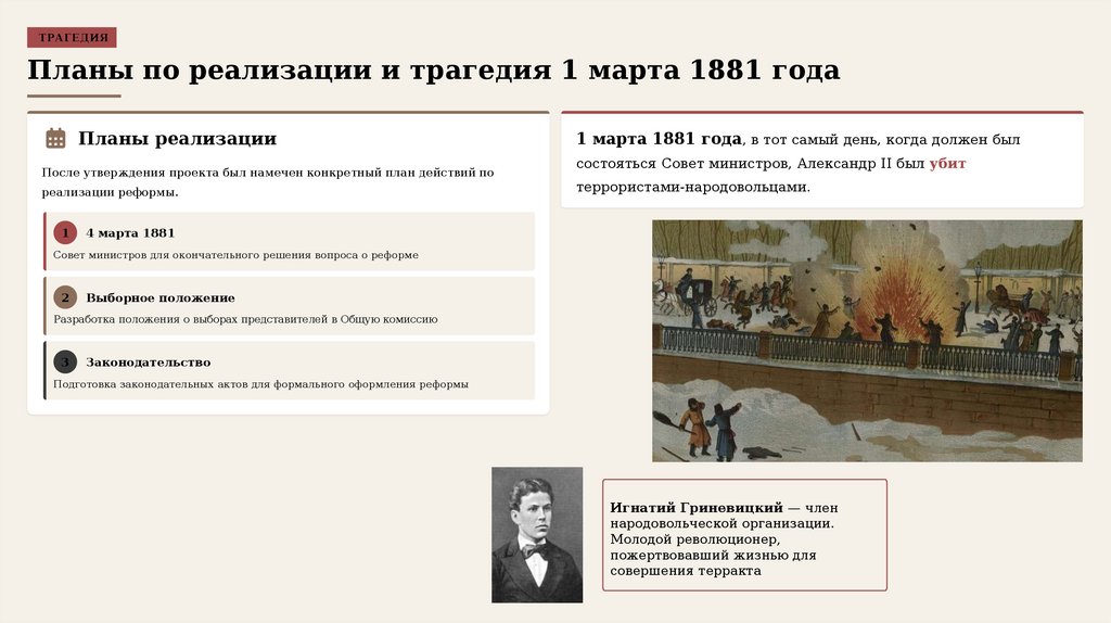 После убийства императора усилились настроения в пользу репрессий, а не реформ.