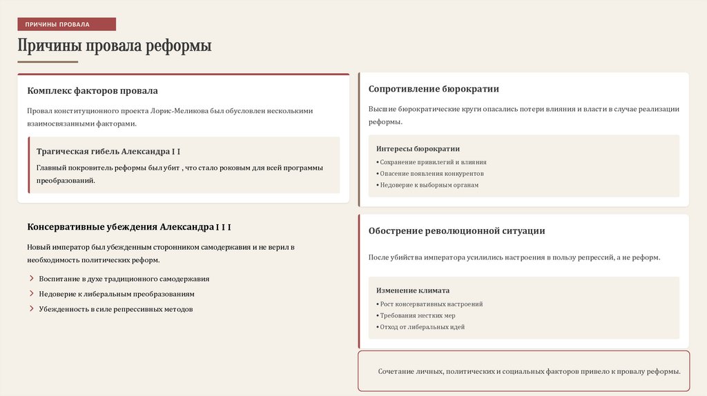 Провал конституционного проекта Лорис-Меликова был обусловлен несколькими