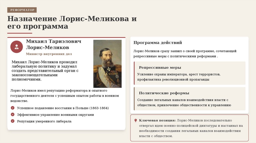 РЕФОРМАТОРНазначение Лорис-Меликова и