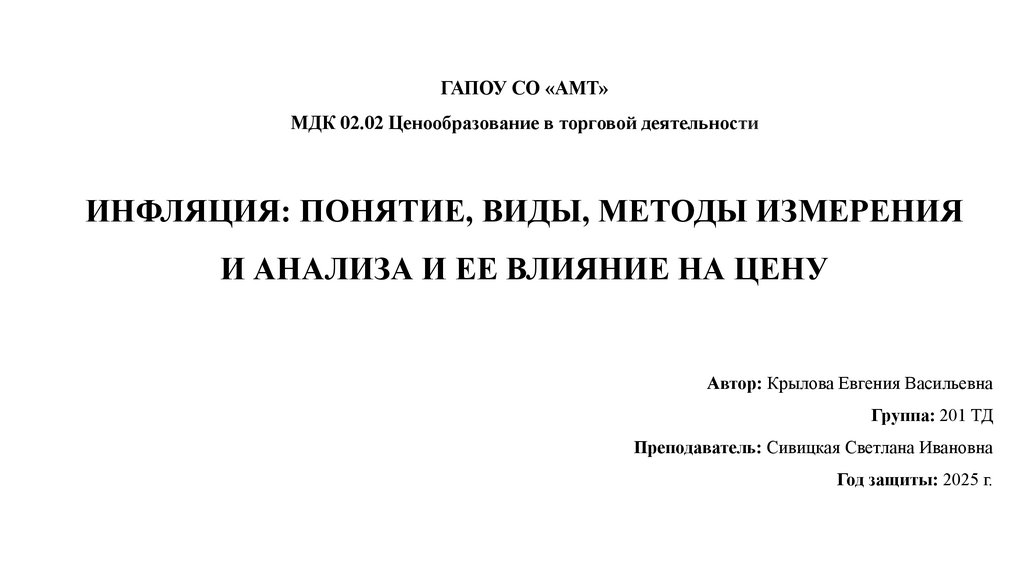 ГАПОУ СО «АМТ»МДК 02.02 Ценообразование в торговой деятельности