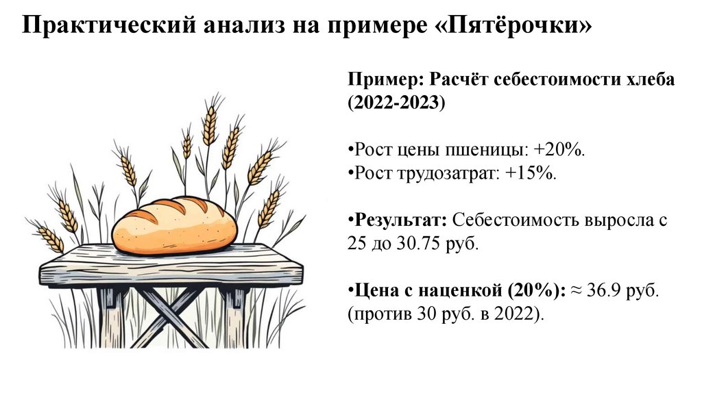Практический анализ на примере «Пятёрочки»Пример: Расчёт себестоимости хлеба