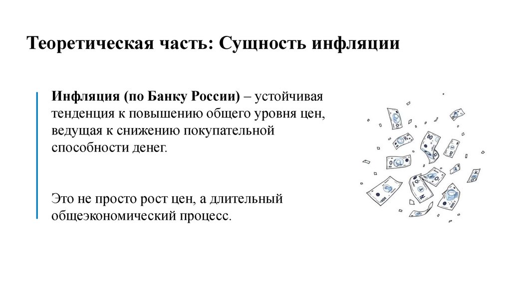 Теоретическая часть: Сущность инфляцииИнфляция (по Банку России) – устойчивая