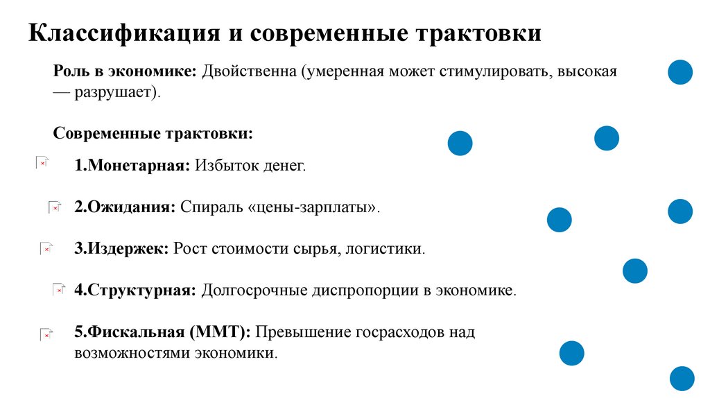 Классификация и современные трактовкиРоль в экономике: Двойственна (умеренная может стимулировать, высокая