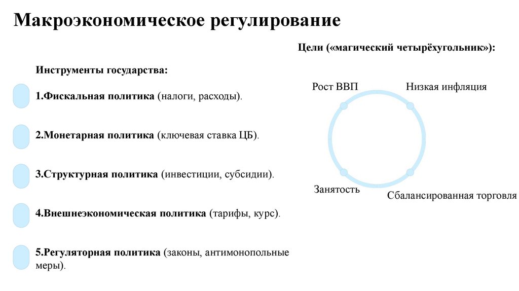 Макроэкономическое регулированиеЦели («магический четырёхугольник»):