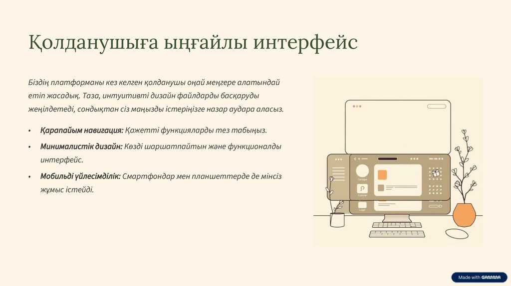 Қолданушыға ыңғайлы интерфейсБіздің платформаны кез келген қолданушы оңай меңгере алатындай