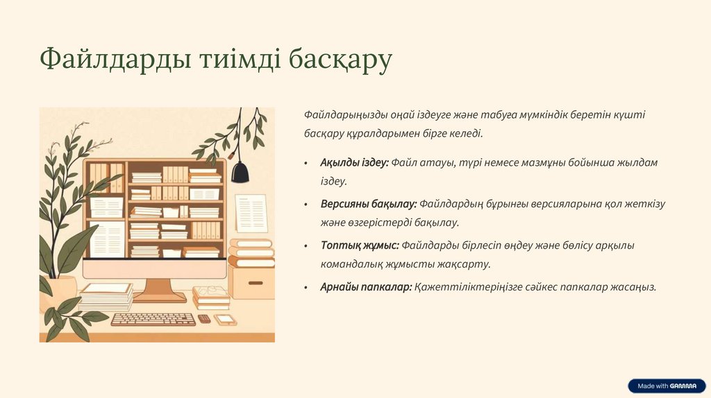 Файлдарды тиімді басқаруФайлдарыңызды оңай іздеуге және табуға мүмкіндік беретін күшті