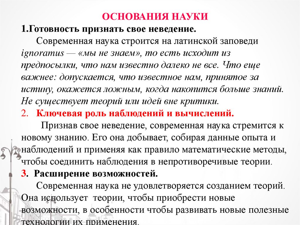 ОСНОВАНИЯ НАУКИ1.Готовность признать свое неведение.