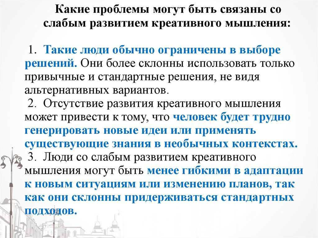 Какие проблемы могут быть связаны сослабым развитием креативного мышления: