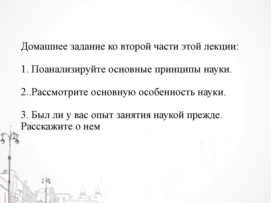 Домашнее задание ко второй части этой лекции:1. Поанализируйте основные принципы науки.