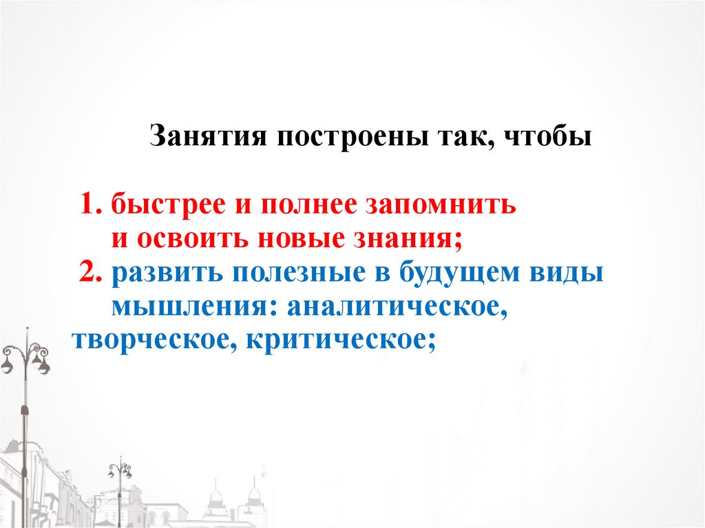 Занятия построены так, чтобы1. быстрее и полнее запомнить