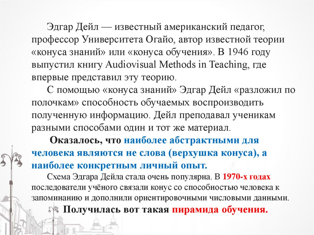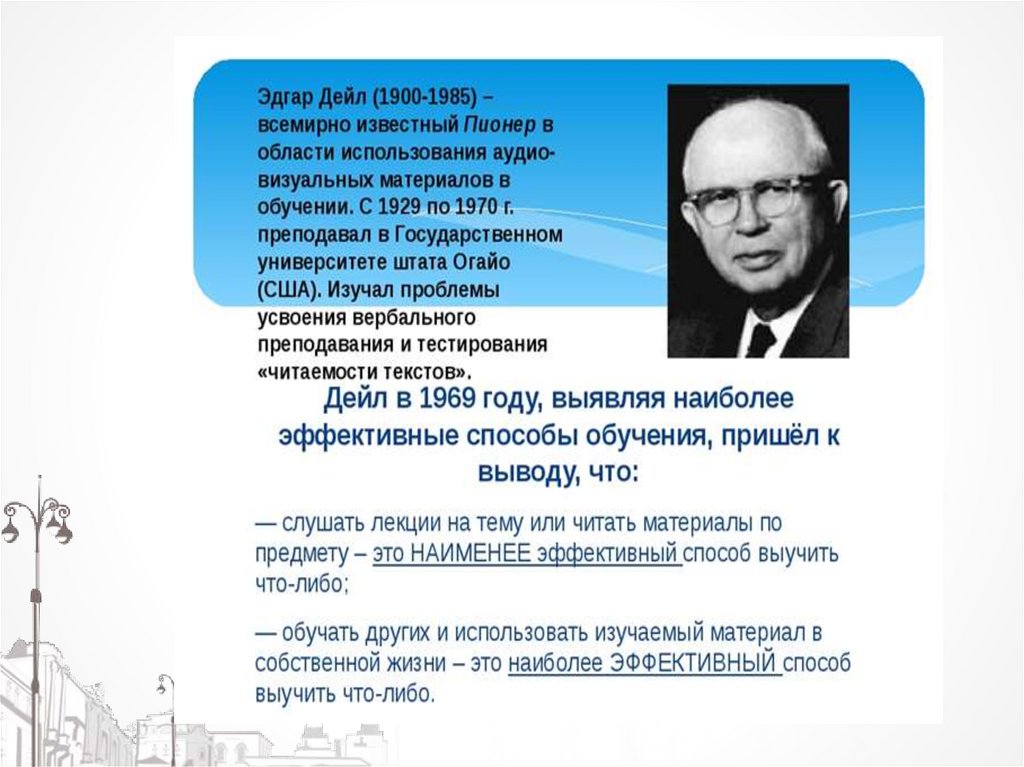 Эдгар Дейл — известный американский педагог,профессор Университета Огайо, автор известной теории