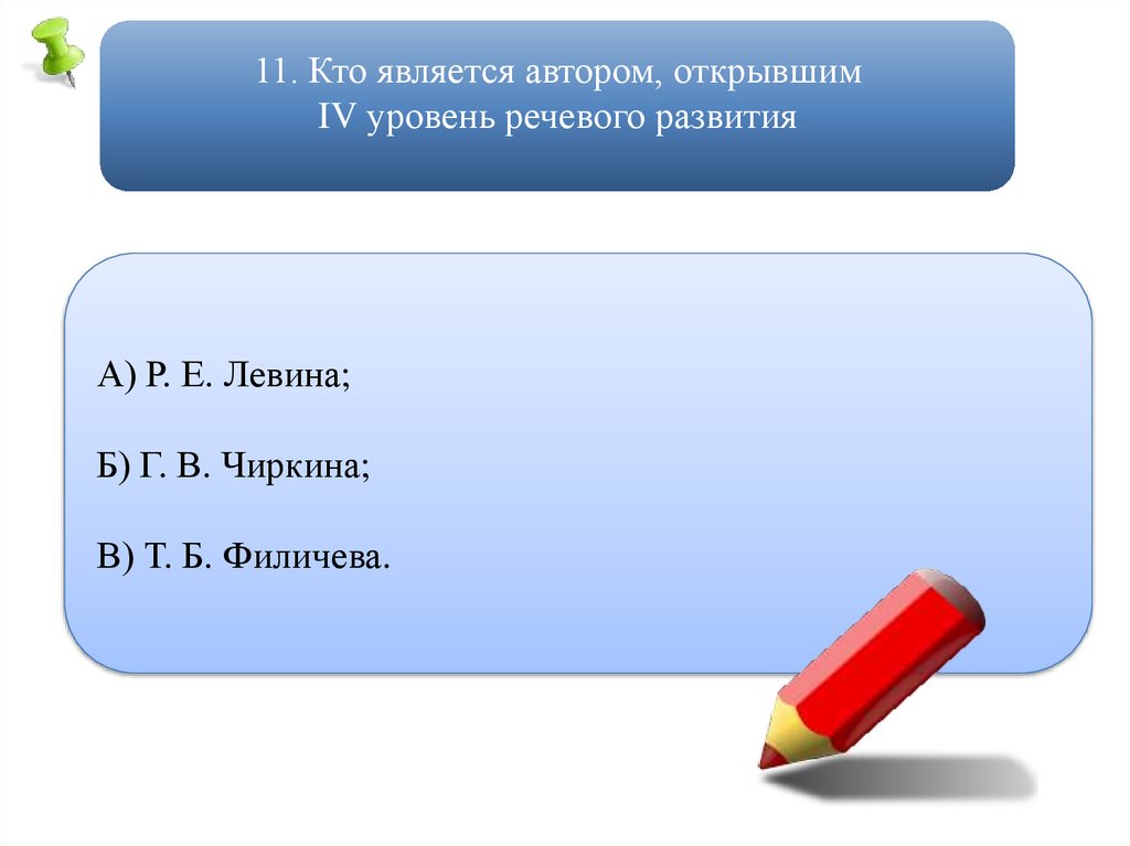 11. Кто является автором, открывшимIV уровень речевого развития