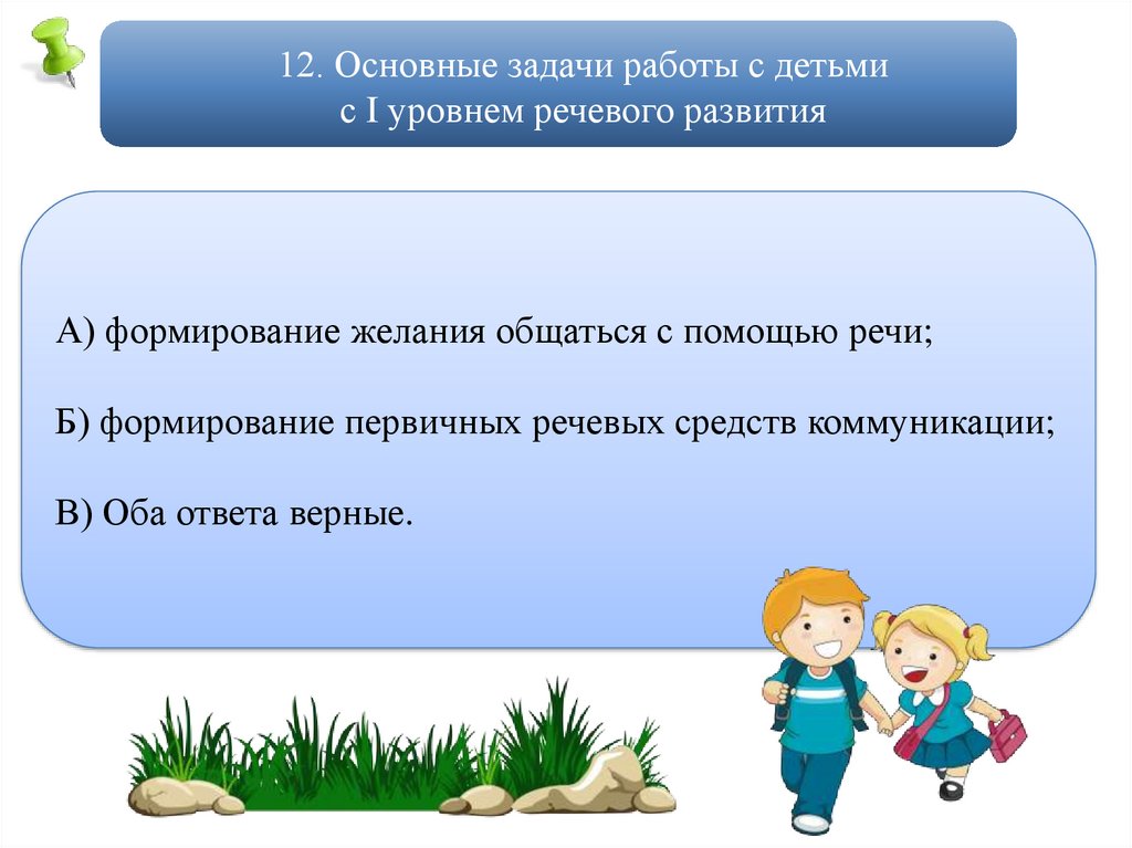 12. Основные задачи работы с детьмис I уровнем речевого развития