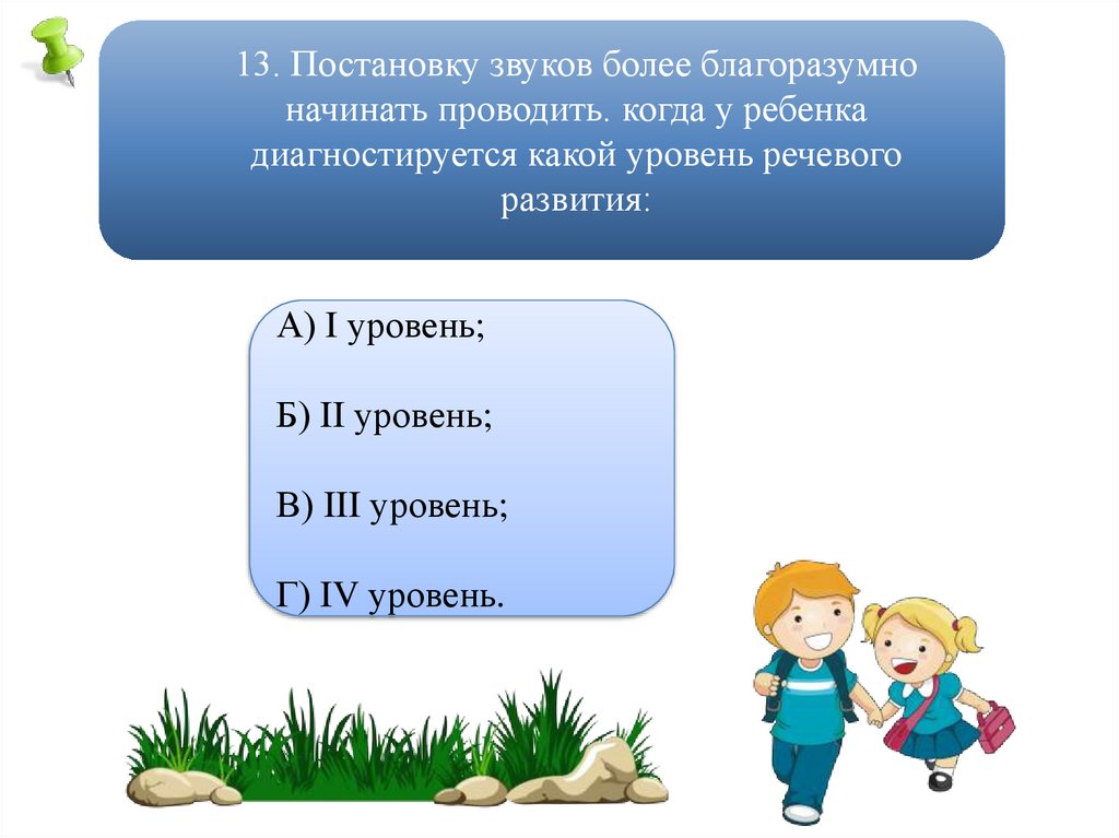 13. Постановку звуков более благоразумноначинать проводить. когда у ребенка
