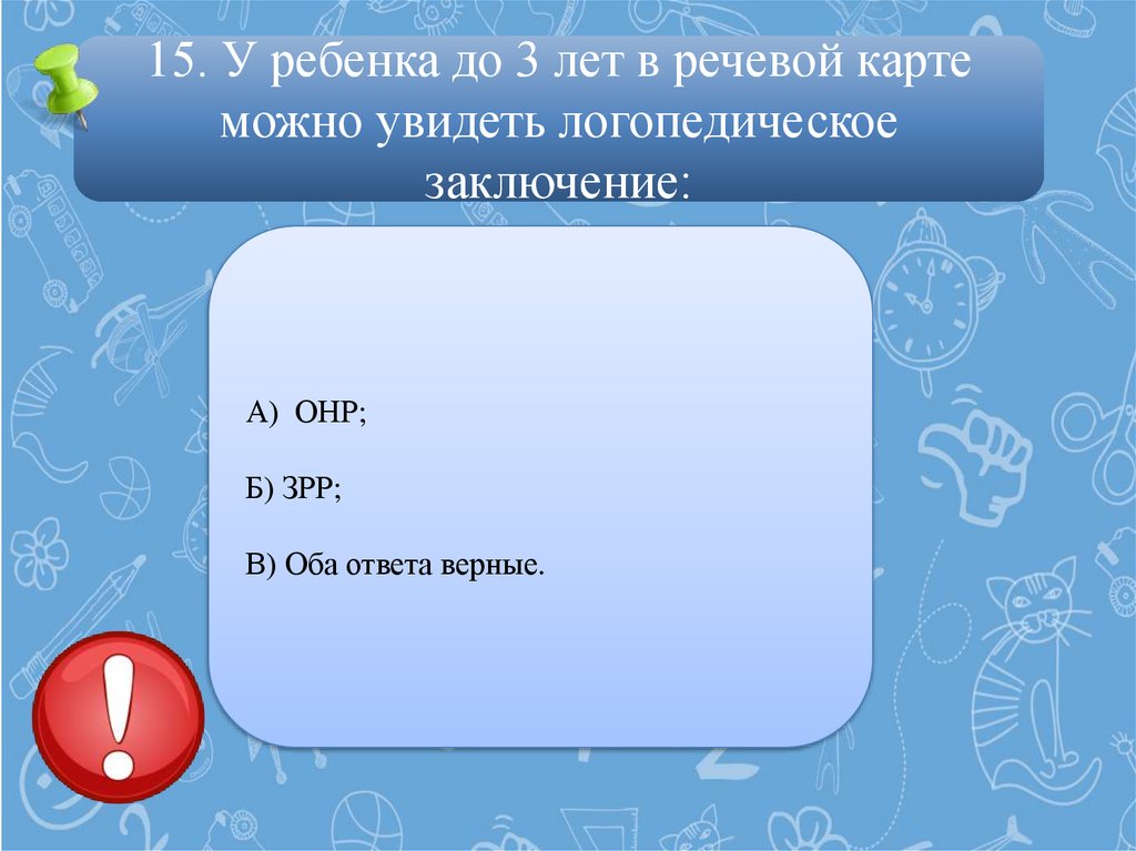 15. У ребенка до 3 лет в речевой картеможно увидеть логопедическое