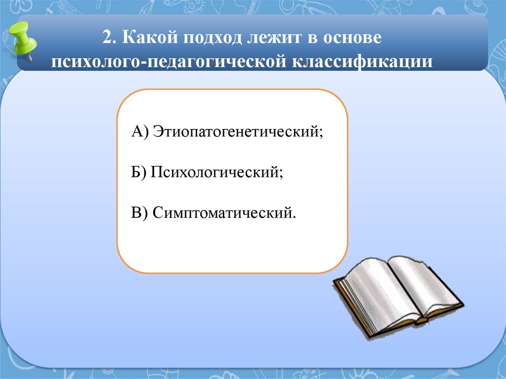 2. Какой подход лежит в основепсихолого-педагогической классификации