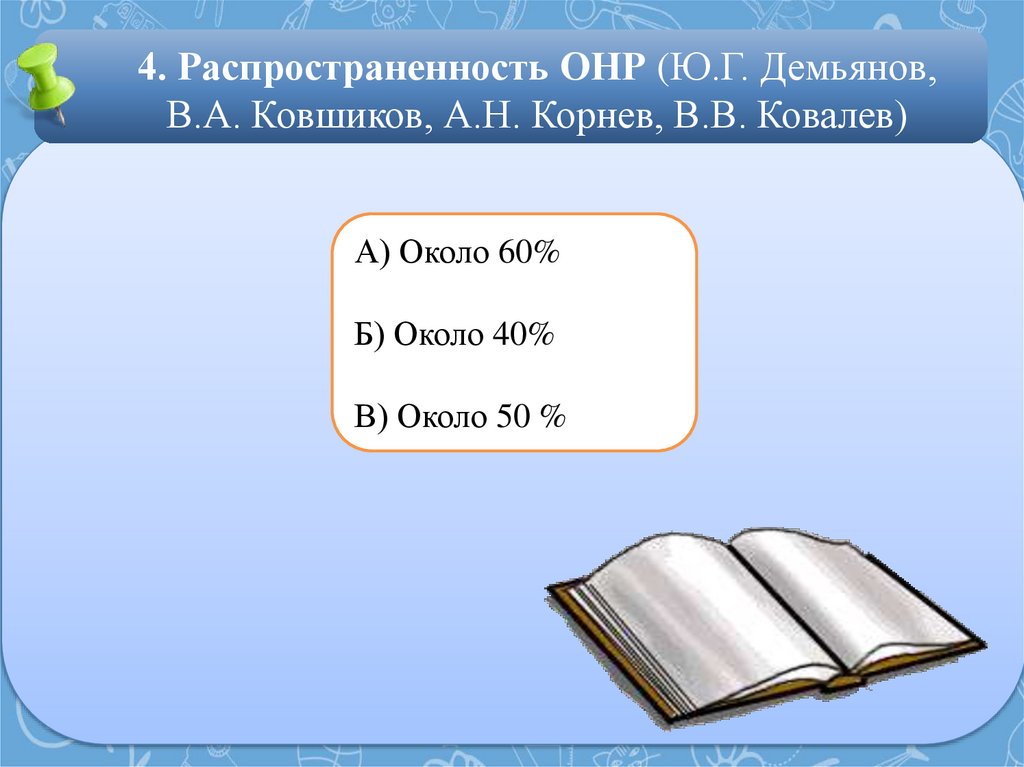 4. Распространенность ОНР (Ю.Г. Демьянов,В.А. Ковшиков, А.Н. Корнев, В.В. Ковалев)
