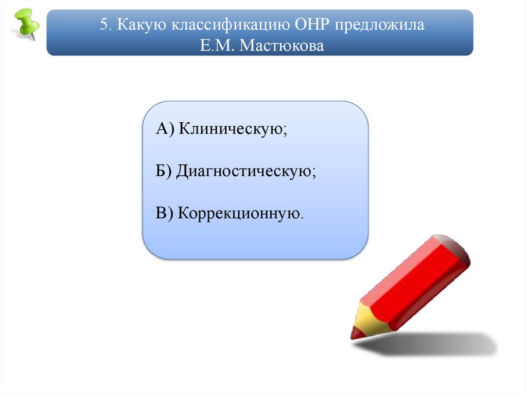 5. Какую классификацию ОНР предложилаЕ.М. Мастюкова
